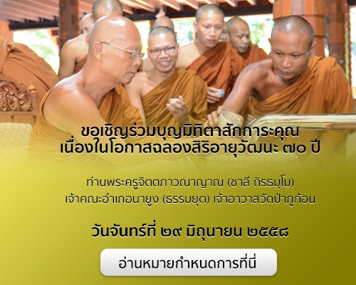 ท่านพระครูจิตตภาวณาญาณ (ชาลี ถิรธมฺโม) เจ้าคณะอำเภอนายูง (ธรรมยุต) เจ้าอาวาสวัดป่าภูก้อน วันจันทร์ที่ ๒๙ มิถุนายน ๒๕๕๘