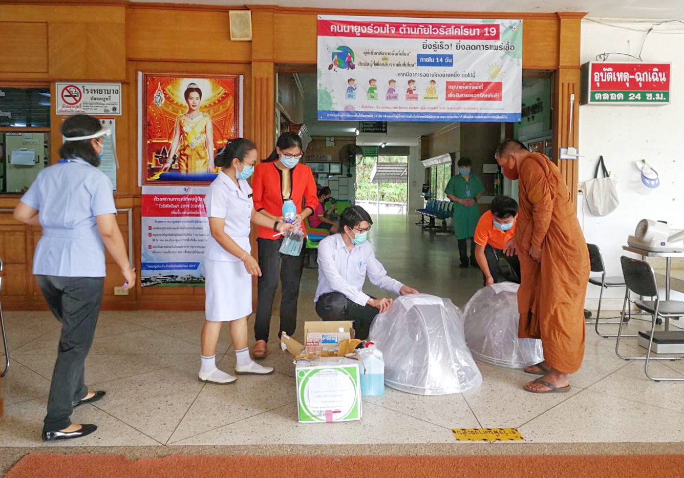 ท่านพระครูสังฆรักษ์ เจ้าอาวาสวัดป่าภูก้อน จึงมอบอุปกรณ์ใช้ตรวจคนไข้-แอลกอฮอล์-เจล-แมส แก่ รพ.นายูง โดยมีท่านผอ.รพ นพ.ศุภชัย ครบตระกูลชัย และคณะแพทย์-พยาบาล รับมอบ